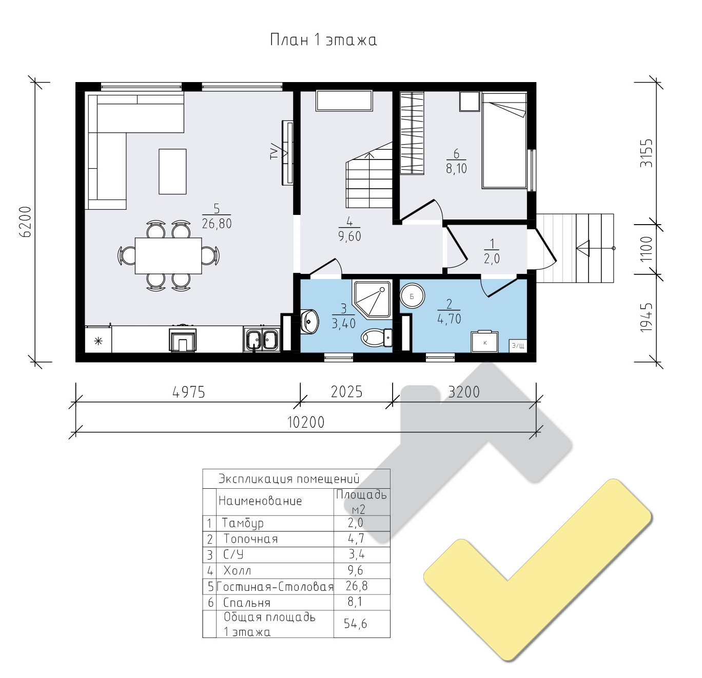 2 спальн. · 1 санузл. · 1 этаж