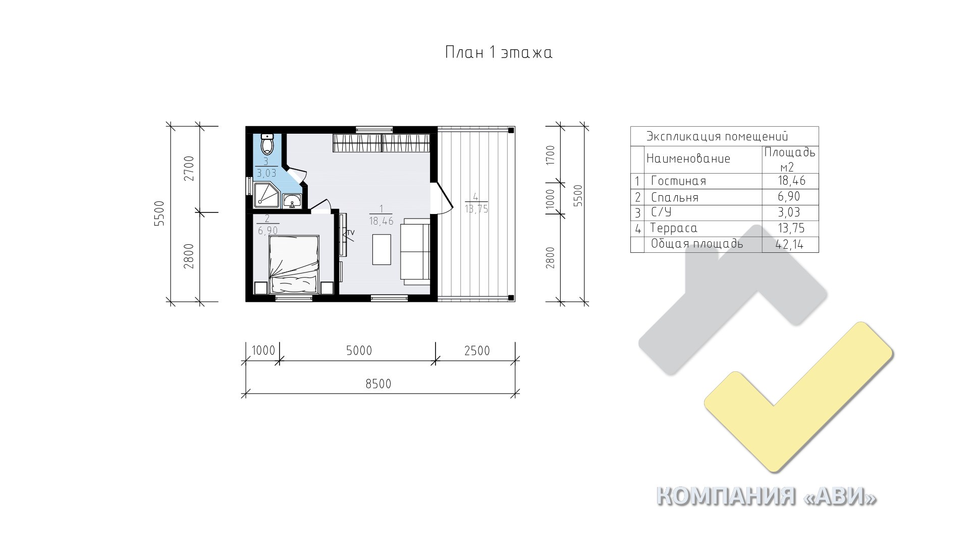 2 спальн. · 1 санузл. · 1 этаж