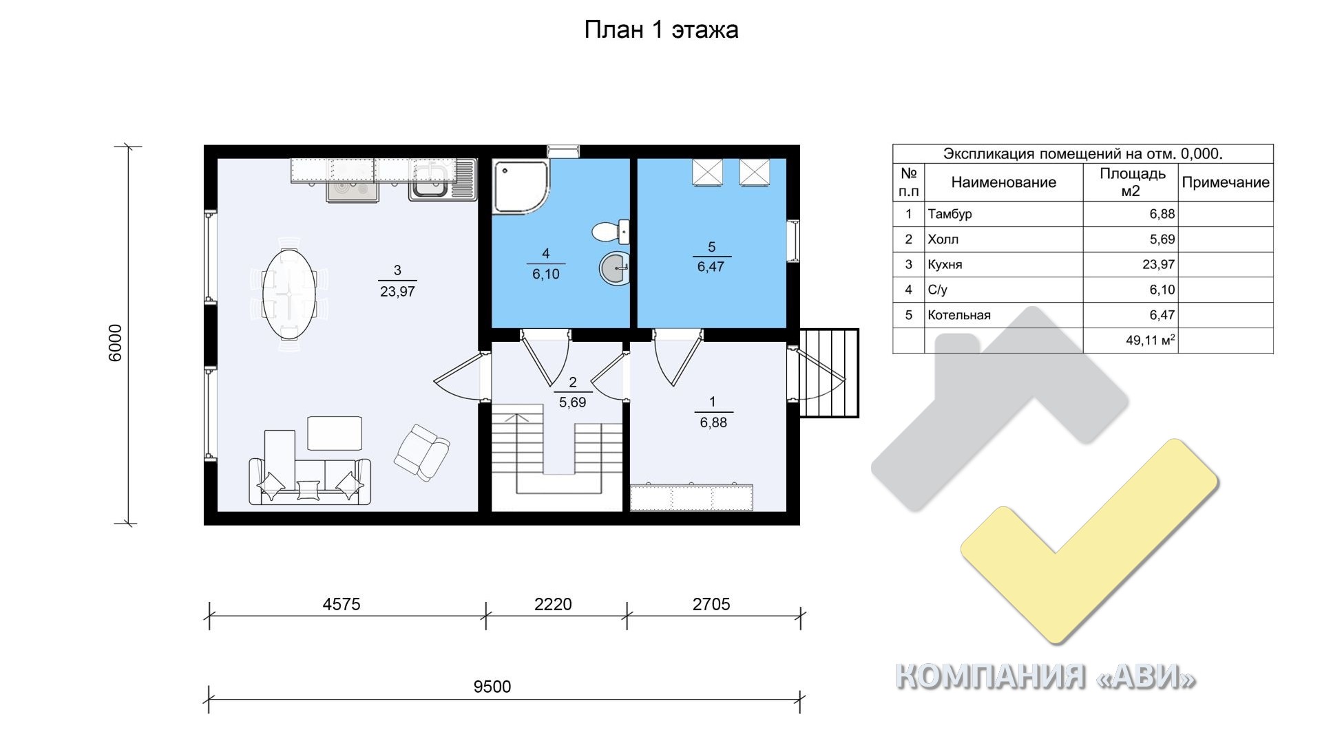 Проект одноэтажного дома с террасой Bungalo-95 м² из газоблока — Домострой