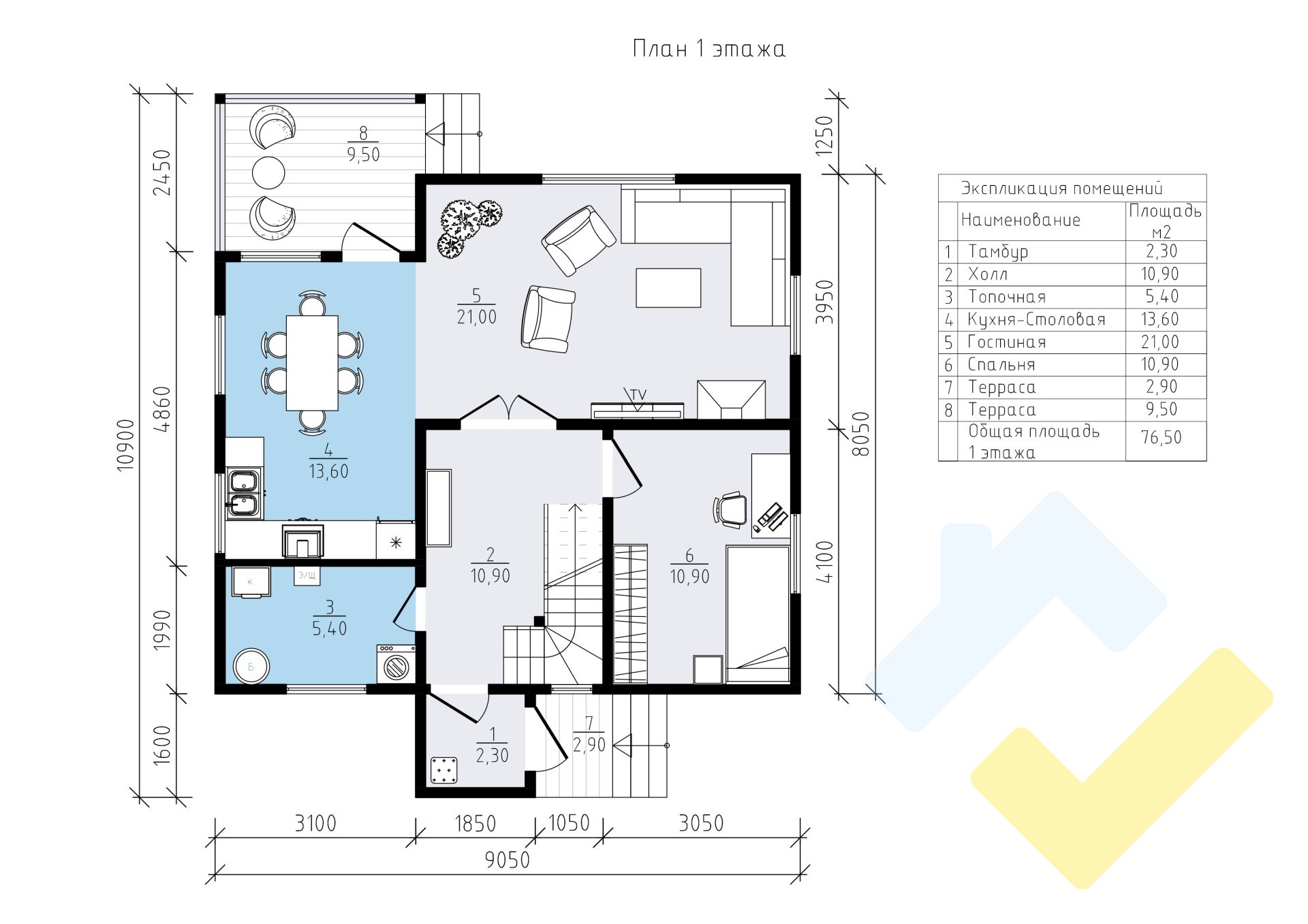 Строительство каркасного дома 9х8 "Каштан" под ключ