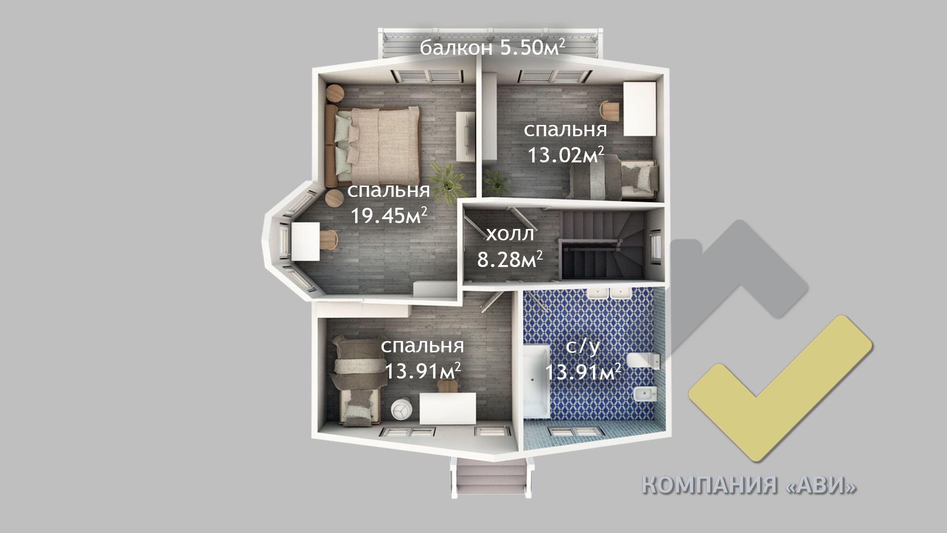 2 спальн. · 2 санузл.