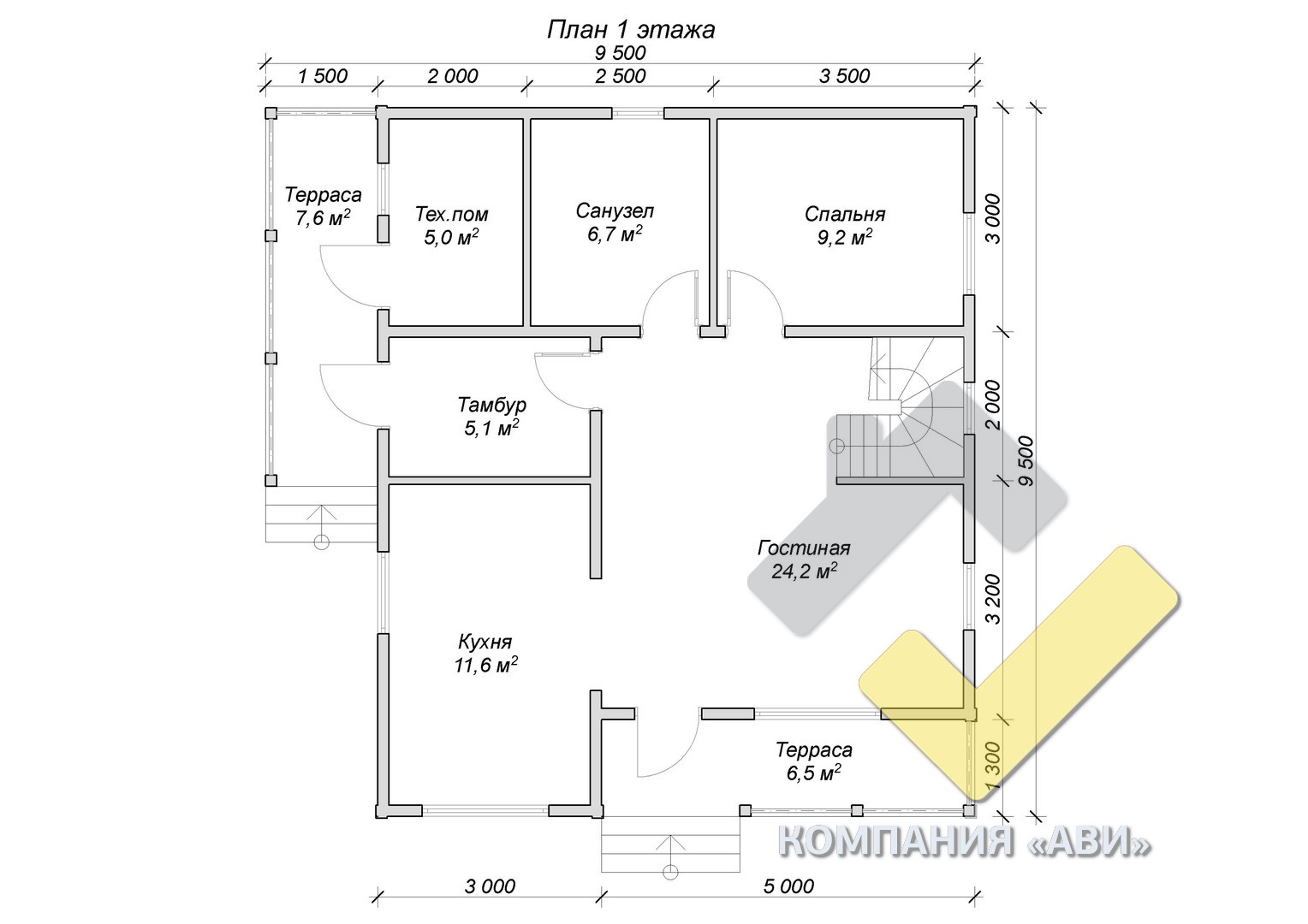 2 спальн. · 1 этаж