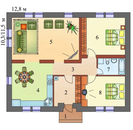 2 спальн. · 1 санузл. · 1 этаж
