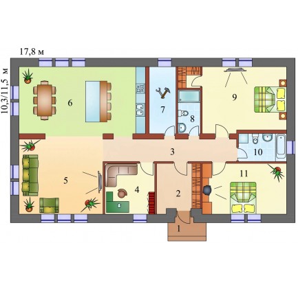 Проект одноэтажного каркасного дома Бунгало L+ под ключ от компании БАКО