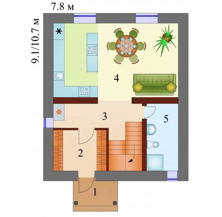 2 спальн. · 1 санузл. · 1 этаж