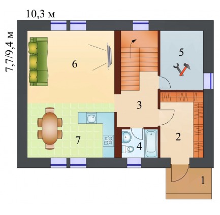 Проект одноэтажного дома "Красная Шапочка" из бруса