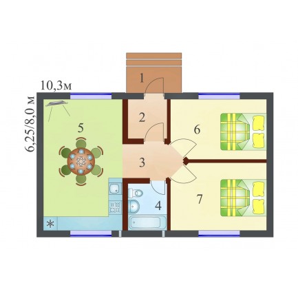 2 спальн. · 1 этаж