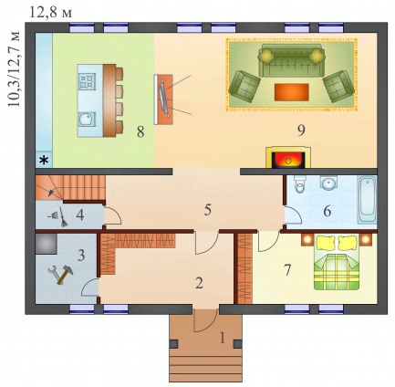 2 спальн. · 1 санузл. · 1 этаж