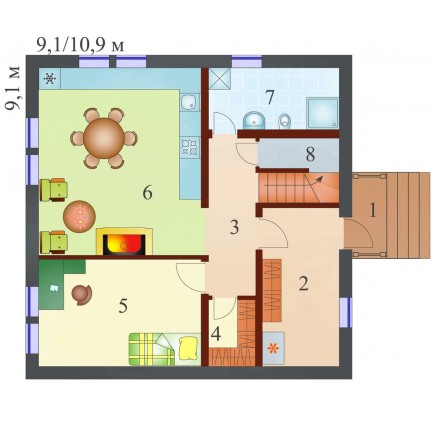 Проект одноэтажного дома "Карамель" из бруса