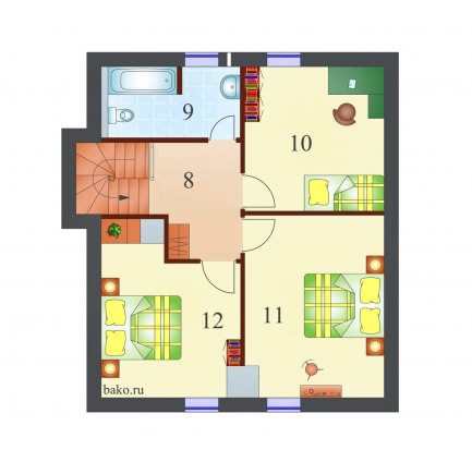 Проект каркасного дома с мансардой Бавария S под ключ от компании БАКО