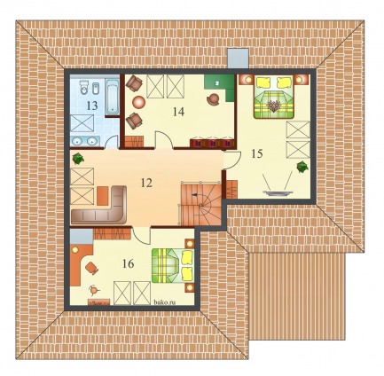 Проект каркасного дома с мансардой Бунгало 2 M под ключ от компании БАКО