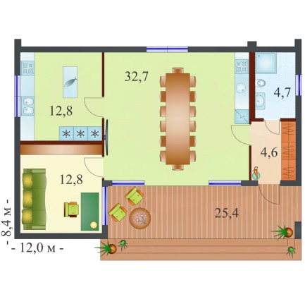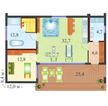 Проект одноэтажного дома "Дуэт 1" из бруса