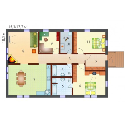 Проект одноэтажного каркасного дома Бунгало L под ключ от компании БАКО