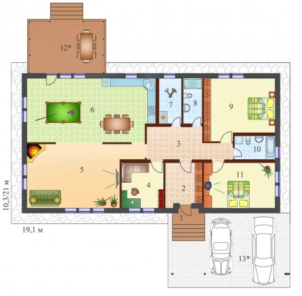 Проект одноэтажного каркасного дома Бунгало XL+ под ключ от компании БАКО