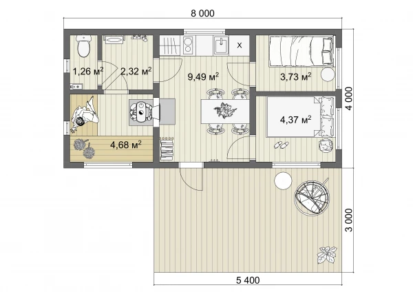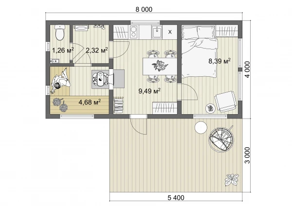 Каркасный дом 7x8 Проект "Перламутр"