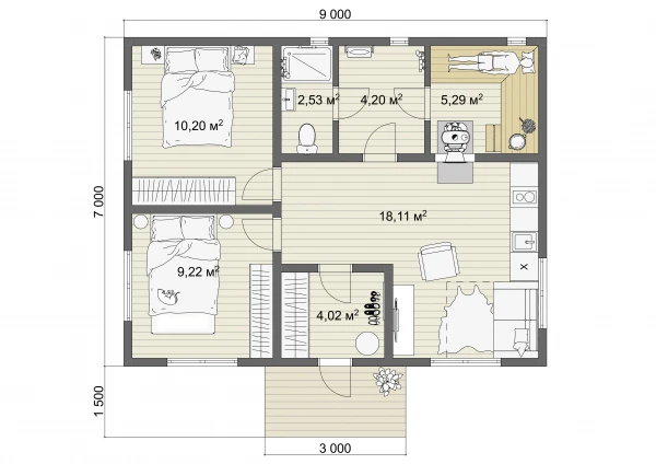 Проект одноэтажного дома с террасой Valencia-67 м² из газоблока — Домострой