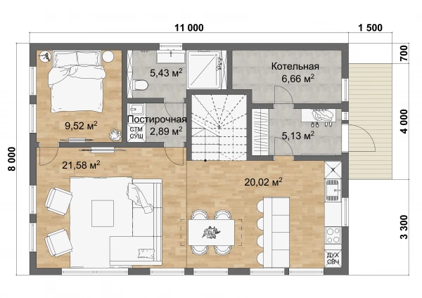 Проект одноэтажного коттеджа "Медовый" из газобетона