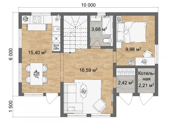 Строительство каркасного дома 9,7х9,1 "Грос" под ключ