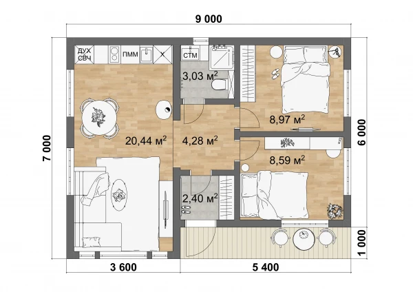 Проект одноэтажного дома "Дуэт 1" из бруса