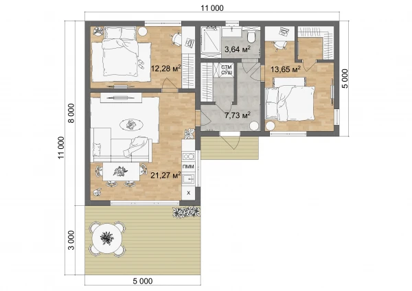 3 спальн. · 2 санузл. · 1 этаж