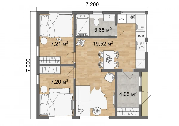 3 спальн. · 1 санузл. · 1 этаж