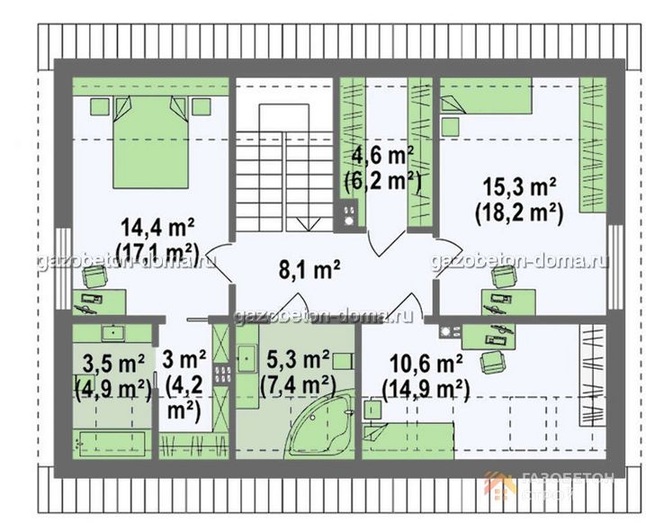 Проект двухэтажного каркасного дома Усадьба S под ключ от компании БАКО
