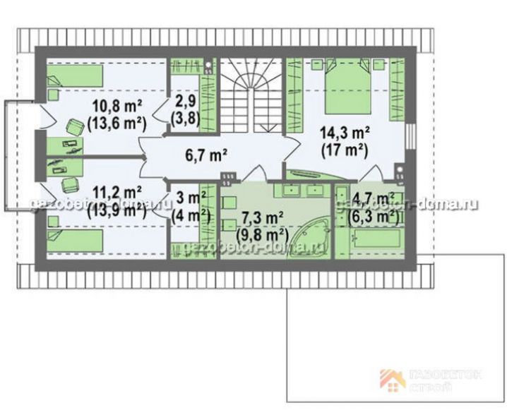 Проект двухэтажного каркасного дома Усадьба S под ключ от компании БАКО