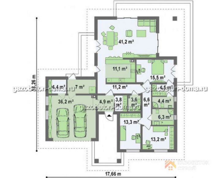Проект DOMFIX 3 - одноэтажный каменный дом