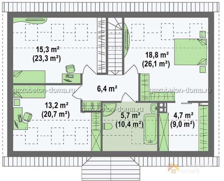 Проект каркасного дома с мансардой Звенигород XL под ключ от компании БАКО