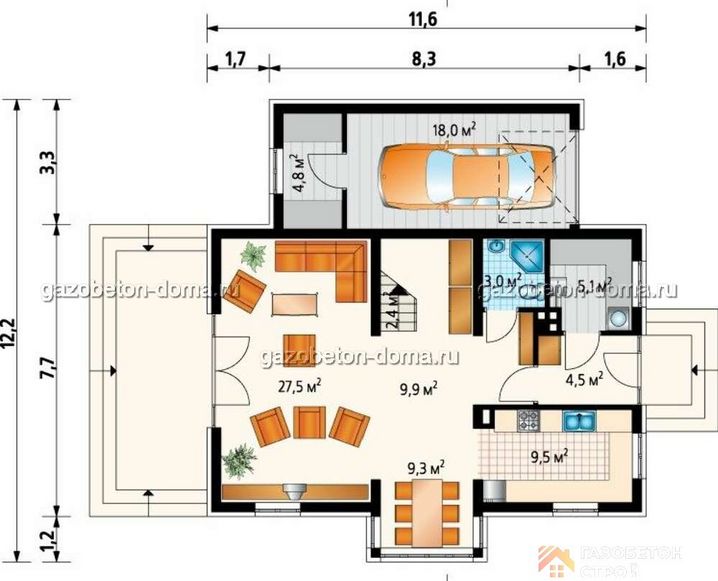 Дом из газобетона Проект ГБ-237