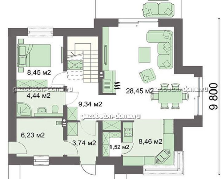 Проект одноэтажного дома "Опалево-М3" из бруса