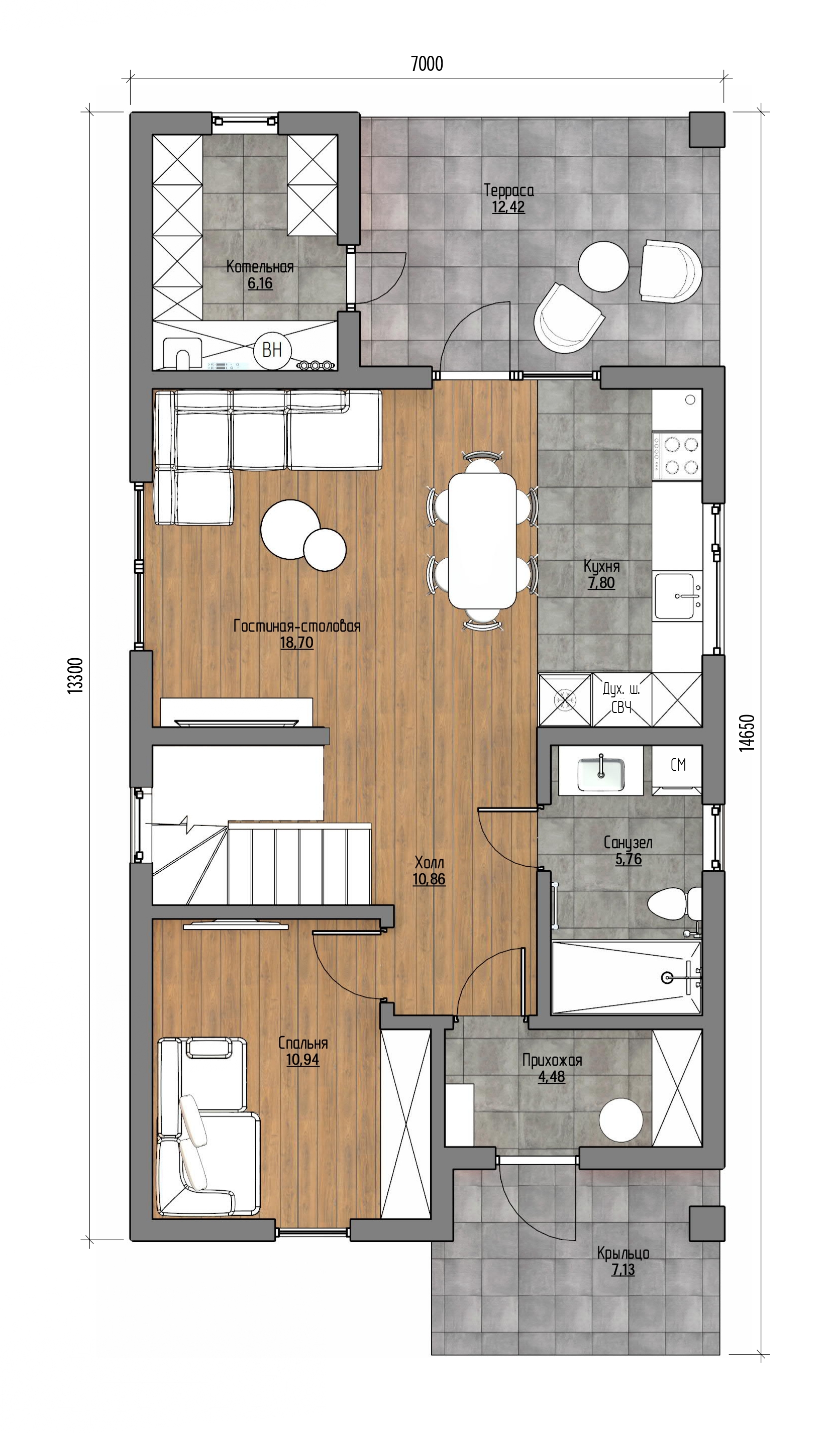 Проект двухэтажного дома с террасой и балконом Olimp-146 м² из газоблока — Домострой