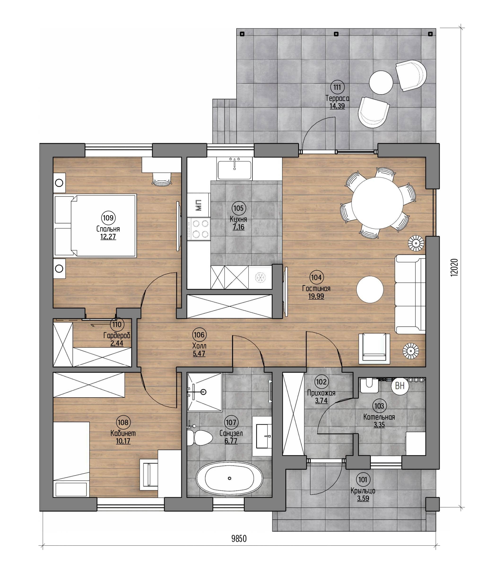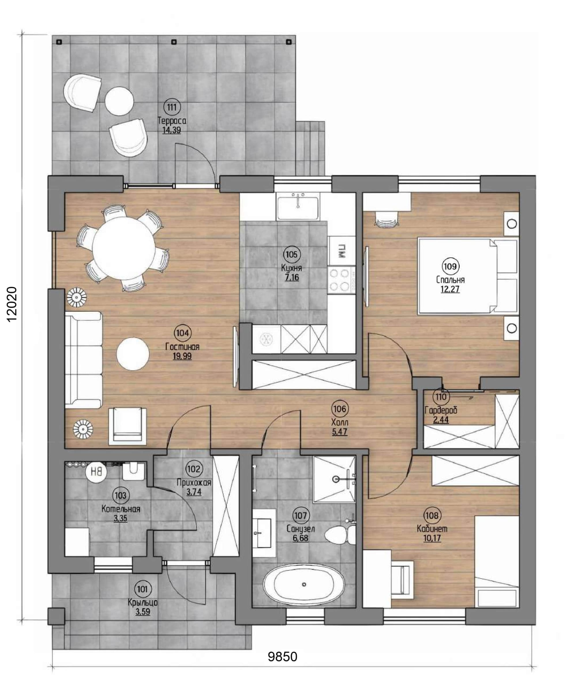 Проект одноэтажного дома с террасой Vineta-90 м² из газоблока — Домострой