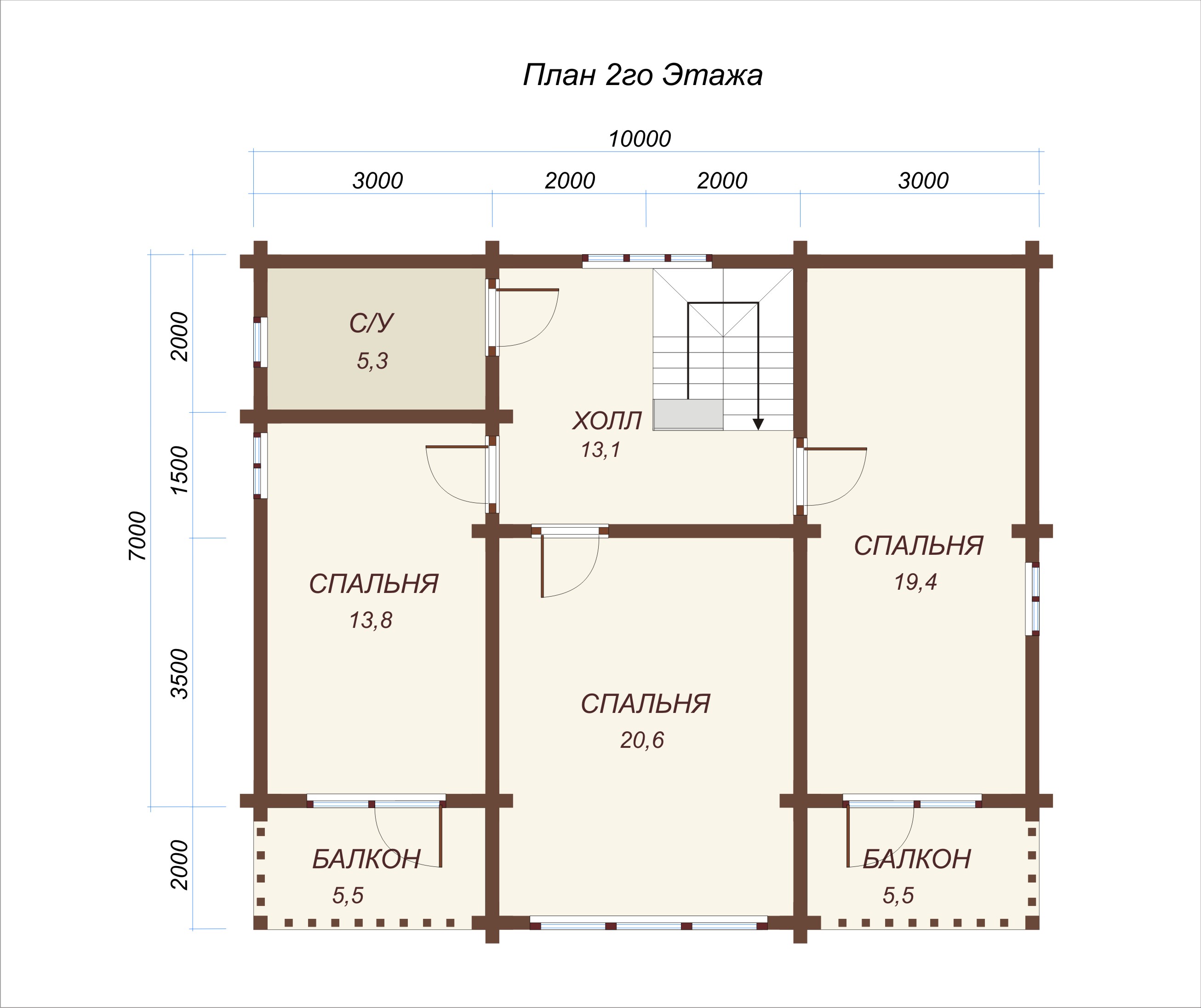 Проект двухэтажного каркасного дома Вилла 2 M под ключ от компании БАКО