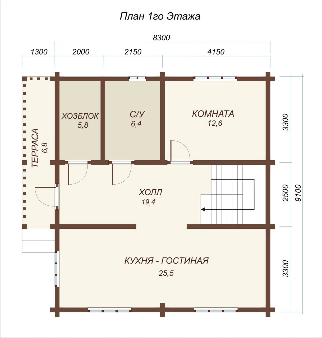 Проект двухэтажного дома "Уголок-М2" из бруса