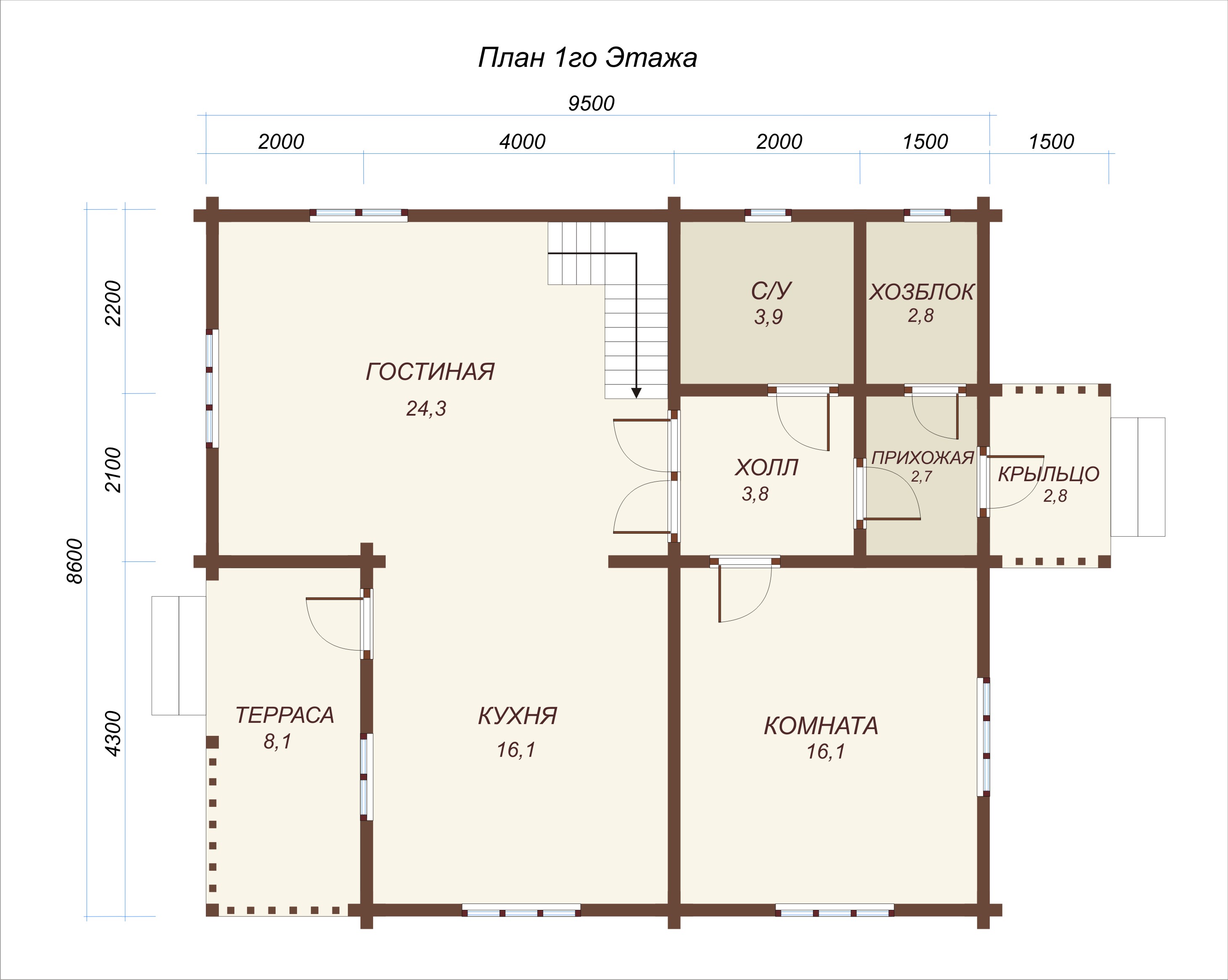 Проект одноэтажного дома "Адриано" из бруса