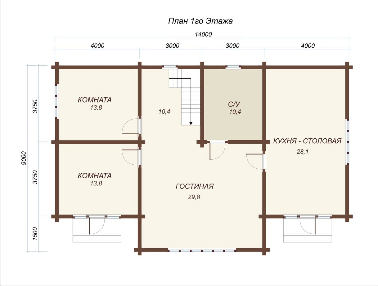 2 спальн. · 2 санузл. · 1 этаж