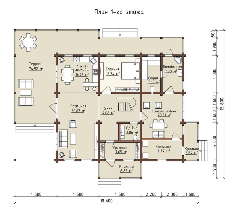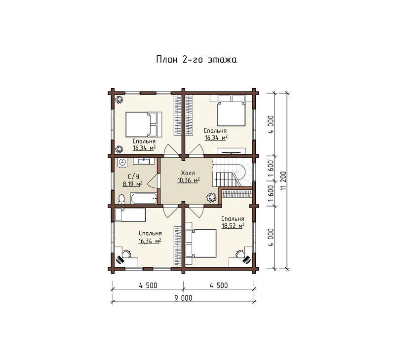 Проект двухэтажного дома "Русская усадьба" из бруса