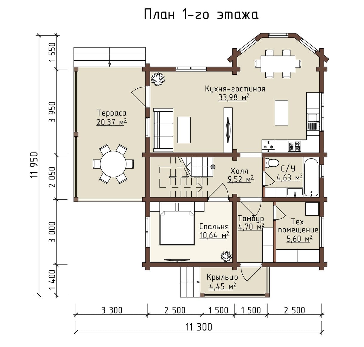 Проект одноэтажного коттеджа "Страдивари" из бруса
