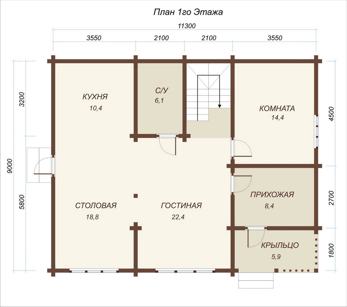 Проект одноэтажного дома "Радуга" из бруса