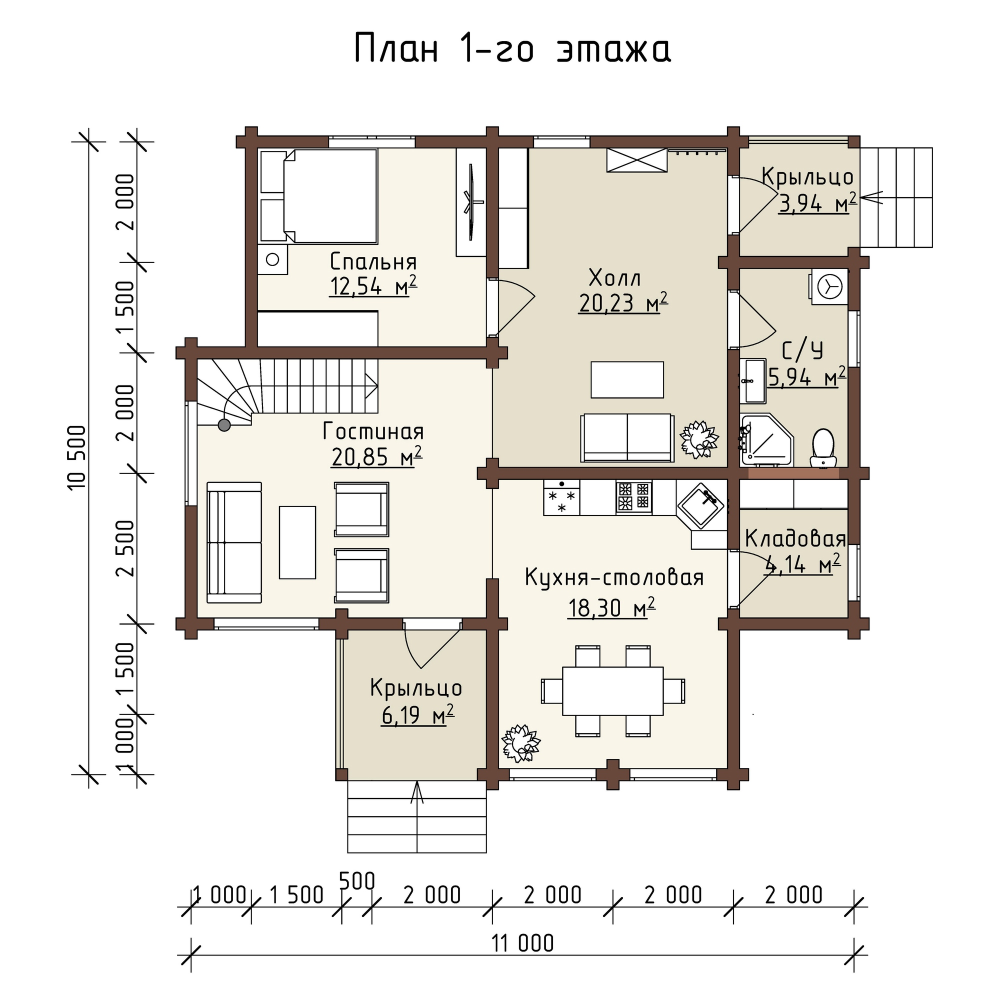 Проект одноэтажного дома "Стелс" из бруса