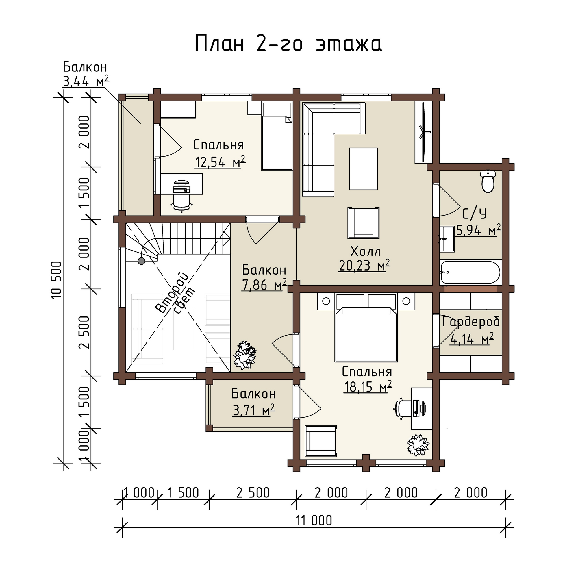 3 спальн. · 2 этаж