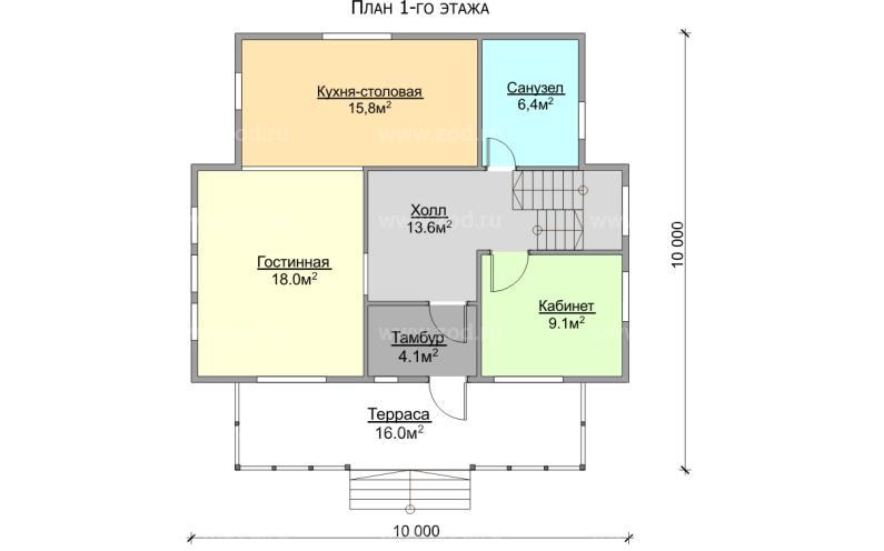 Проект двухэтажного дома "Уголок-М3" из бруса