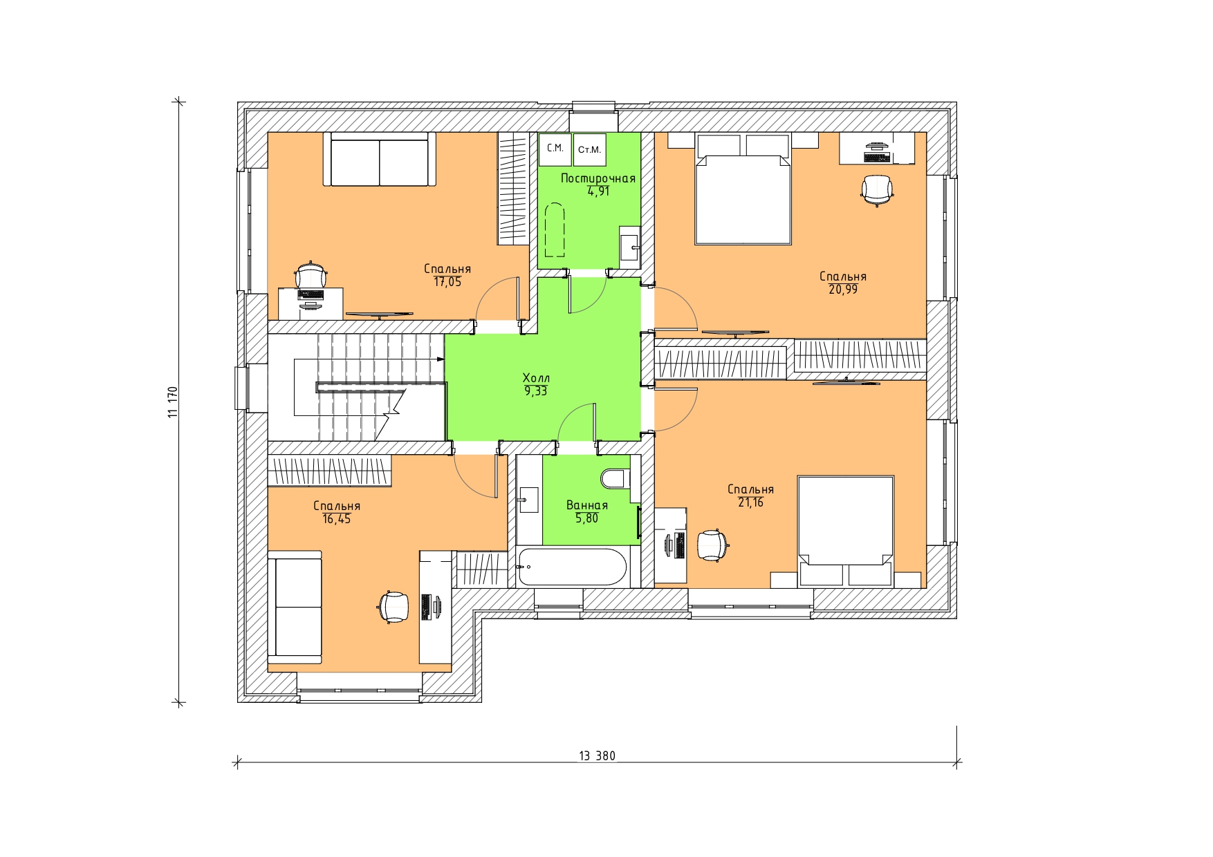 3 спальн. · 1 этаж