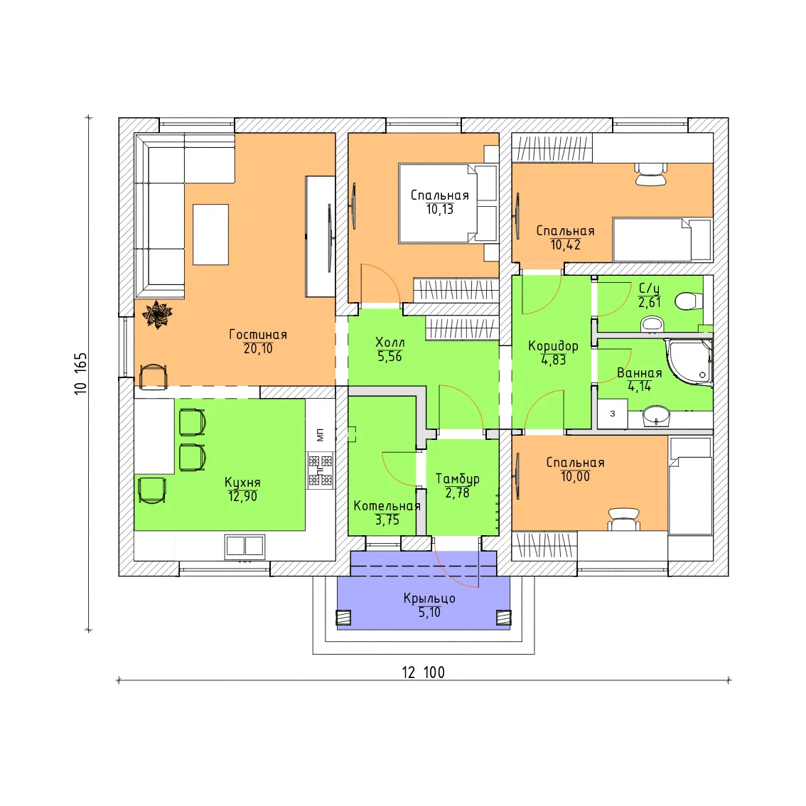 Проект одноэтажного коттеджа "Олеандр" из бруса