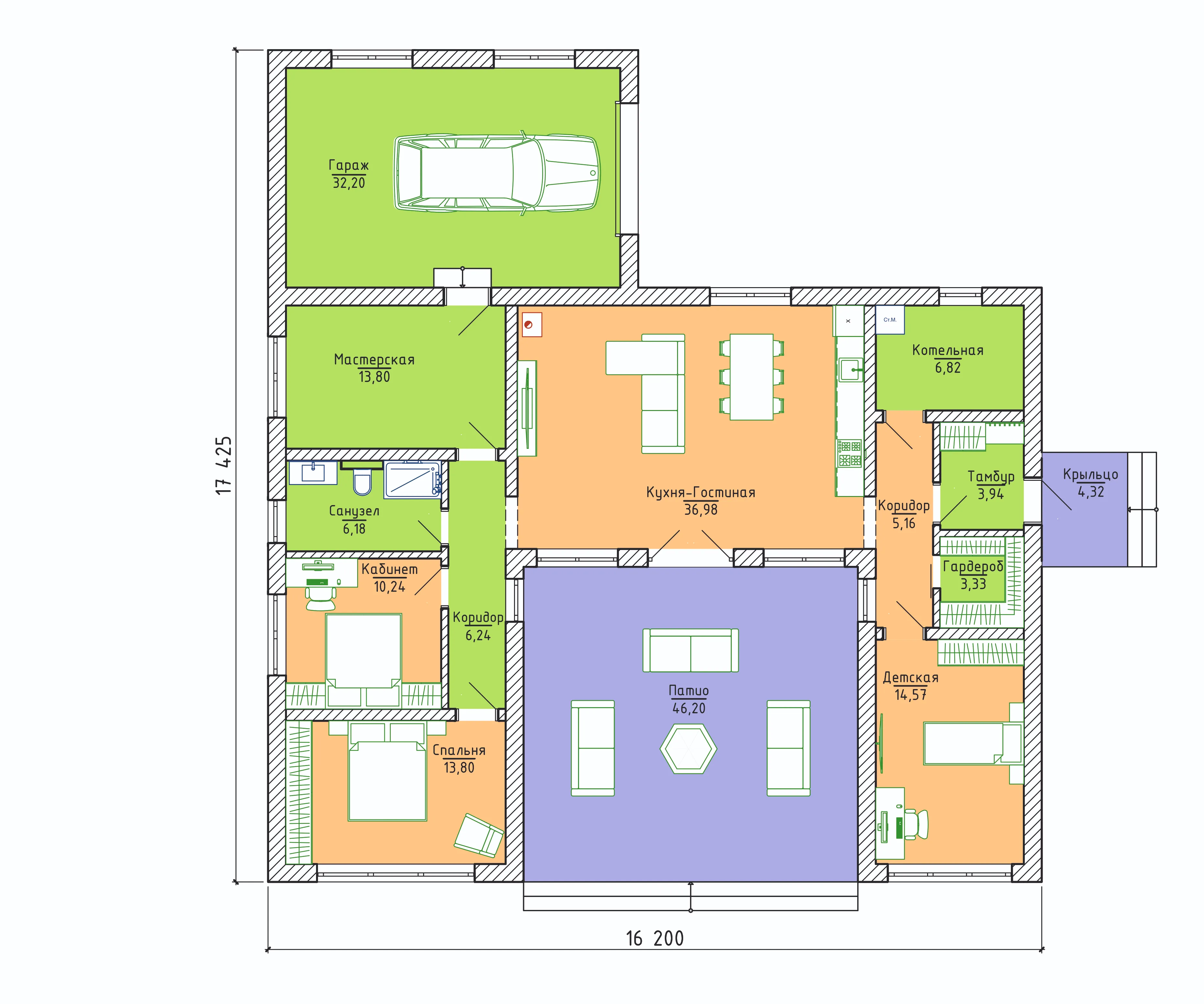 Проект одноэтажного коттеджа "Рея" из газобетона