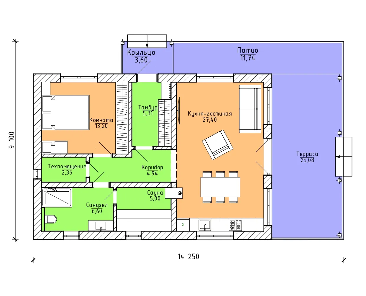 Проект одноэтажного дома "Легенда" из бруса