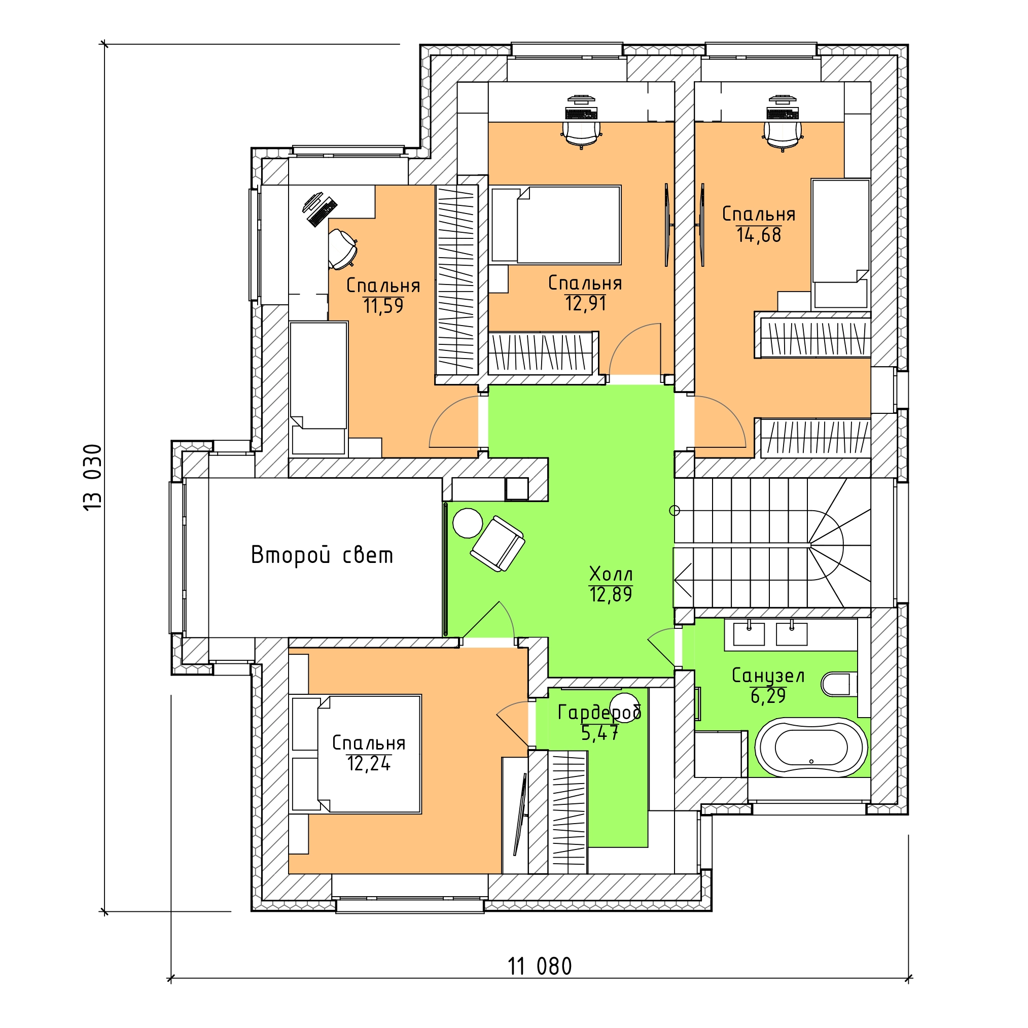 5 спальн. · 2 этаж
