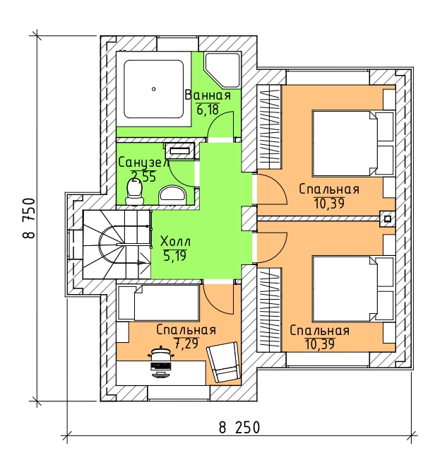 2 спальн. · 1 санузл. · 2 этаж