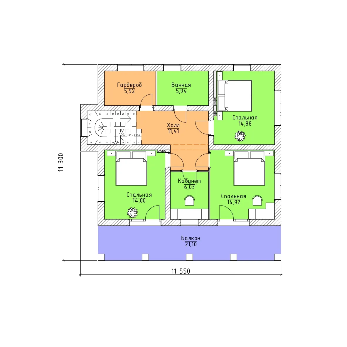Проект двухэтажного коттеджа "Министерский" из газобетона